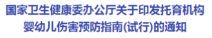为进一步加强对托育机构的指导,提高托育机构服务质量,保障婴幼儿安全健康成长,国家卫生健康委组织编写了《托育机构婴幼儿伤害预防指南(试行)》。现印发给你们,供参考。